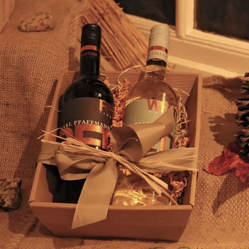 2 Flaschen Pfaffmann-Weine im Präsentkarton.